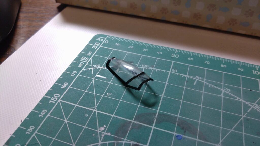 では、前回、本キットの難所の一つだと思っているデカール貼り付けを済ませたのですが、今回はクリアパーツを筆塗していき、トップコートを吹き付けます。