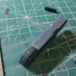 ガンプラではパーツ合わせ時のずれはほとんどないため気にしなかったのです。しかし、接着前提の本キットは事情が異なるようです。接着後の固まるまでの乾燥時間内に詳細な合わせ目の位置合わせが必要になることを学びました。接着剤が固まるまでに微調整すると、削る容積が少なくなります。もし、調整が出来ずに段差が大きい面は削る量が多くなってしまいます。