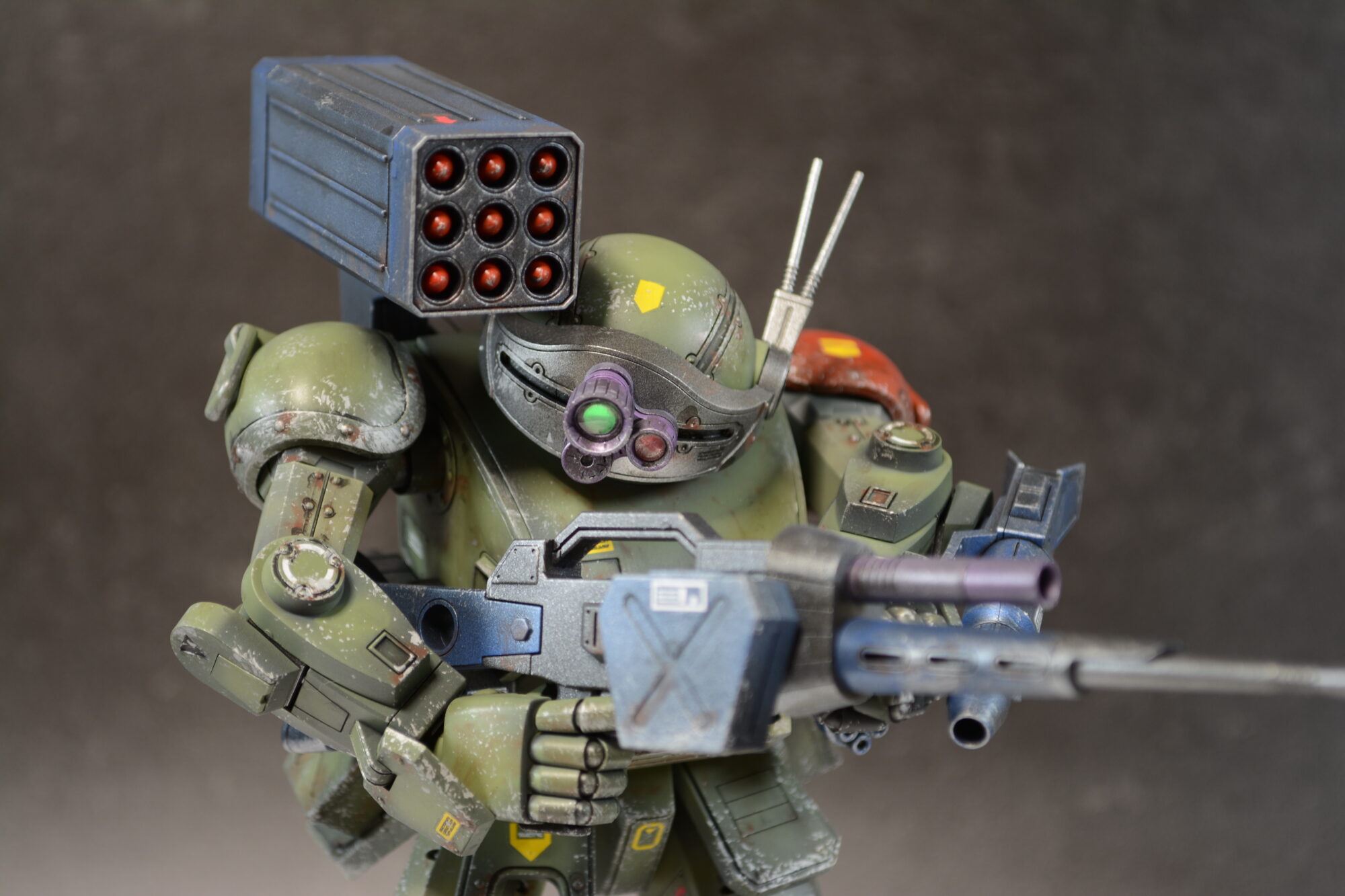 今回は、こちらのキット、塗装済みウォッシング済みのウェーブ社製1/24スコープドッグレッドショルダーカスタムです。