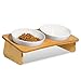 猫 犬 食器 ご飯皿 ペット食器 えさ皿 餌台 餌入れ 猫壱 エサ台 フードボウルスタンド 水ボウル 子犬 小型犬用 陶磁器碗 竹製スタンド 高さ調節可能 (36*14.2cm 斜め餌台面 )