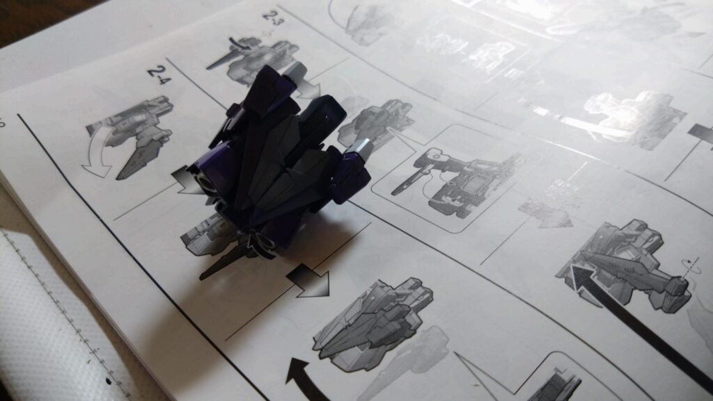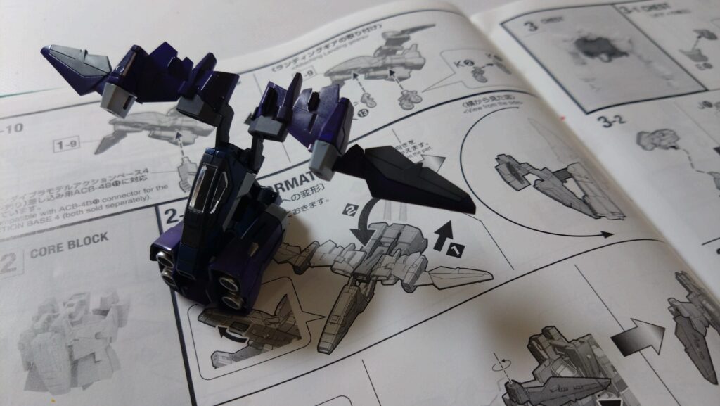 それでは、説明書の手順通りに、まずは、コアファイターから組み立てていきました。それにして、塗装前と比べるとずいぶん雰囲気が怖くなりました・・。