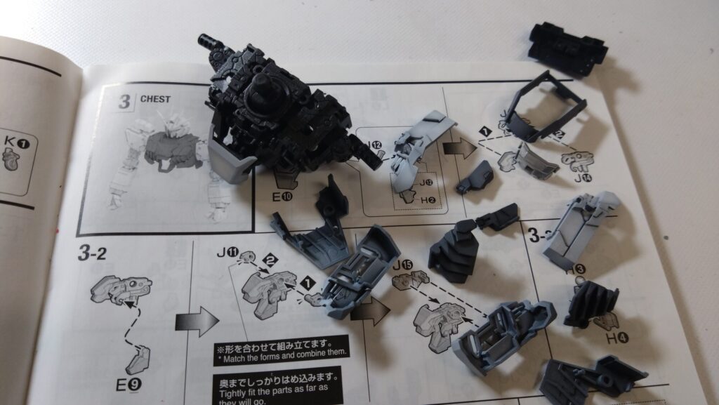 次は、胸部で、外装をどんどん組み込んでいきkます。