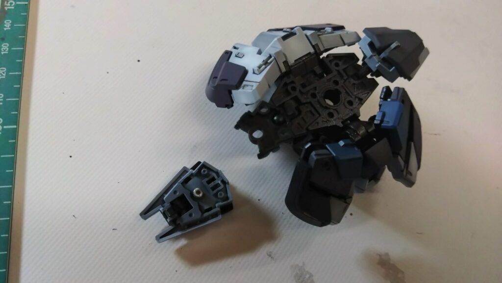 ちなみに、どの箇所についても言えますが、随所にC装備換装の為のギミックがちりばめられており、可動関節も含めると複雑な構造になっています。