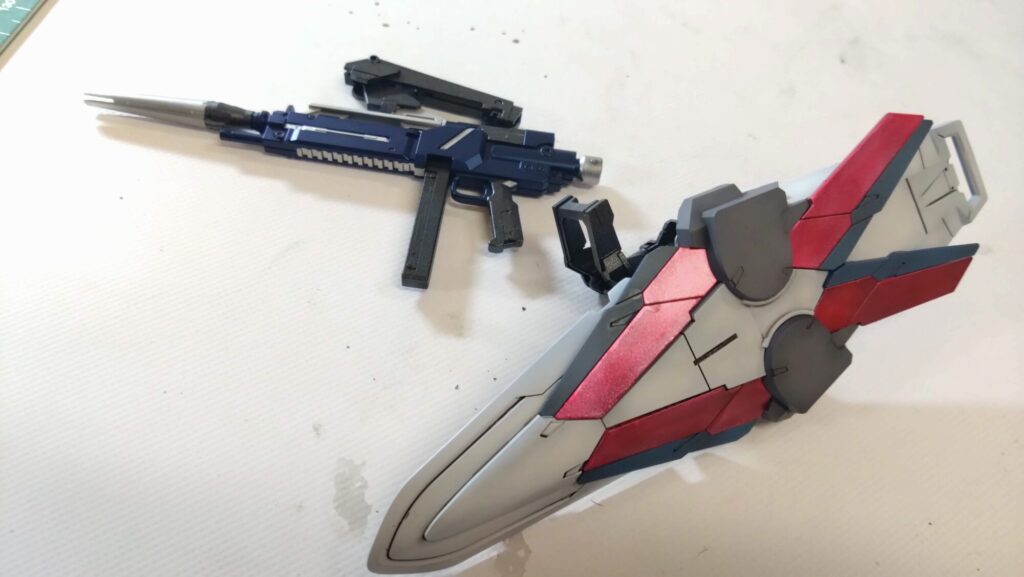 ところで、武装類は、説明書を無視して適度に塗分けしています。ここでもパーツ不足在りました。
