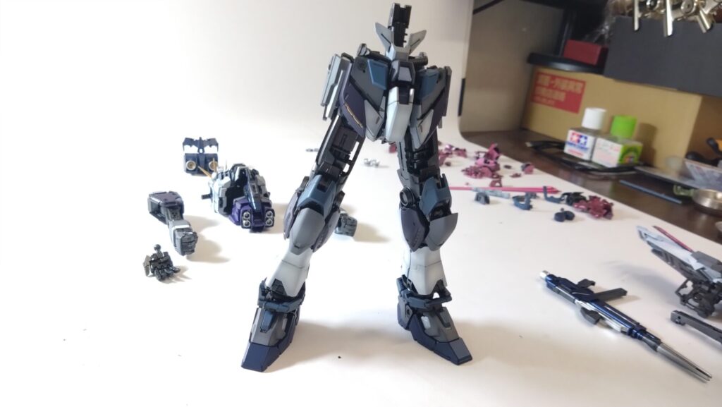 MG 1/100 ナラティブガンダム C装備 Ver.Kaを塗装作成します。⑨スミ入れをして輪郭を際立てます。(機動戦士ガンダムNT)
