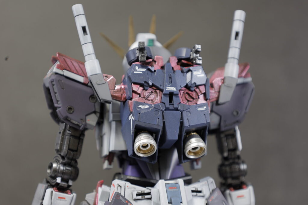 ところで、よーく機体を確認していて気が付いたのですが、バックパックに突起物を発見しました。どうやら、MGνガンダムVer.kaのフィンファンネルを撮りつられるようです。