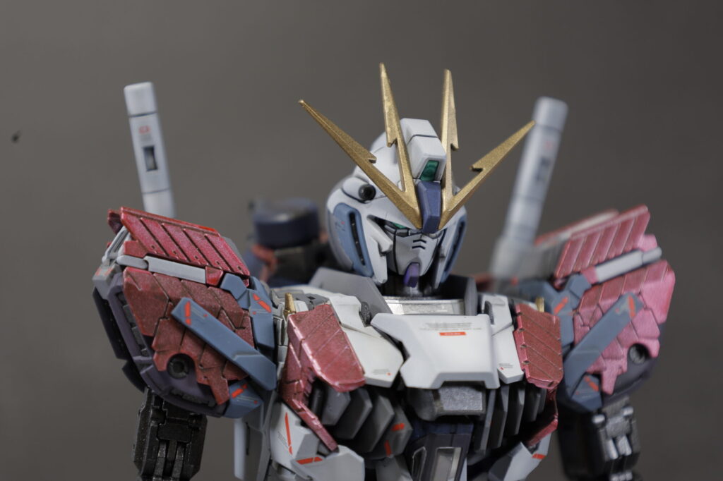 さて、なぜいつもビームライフルの先を明るい色にするのか、という事の回答は、輪郭(シルエット)をはっきりさせるため、一眼レフ特有のボケ具合と背景との色違いを分かりやすくするためを意識しているからです。