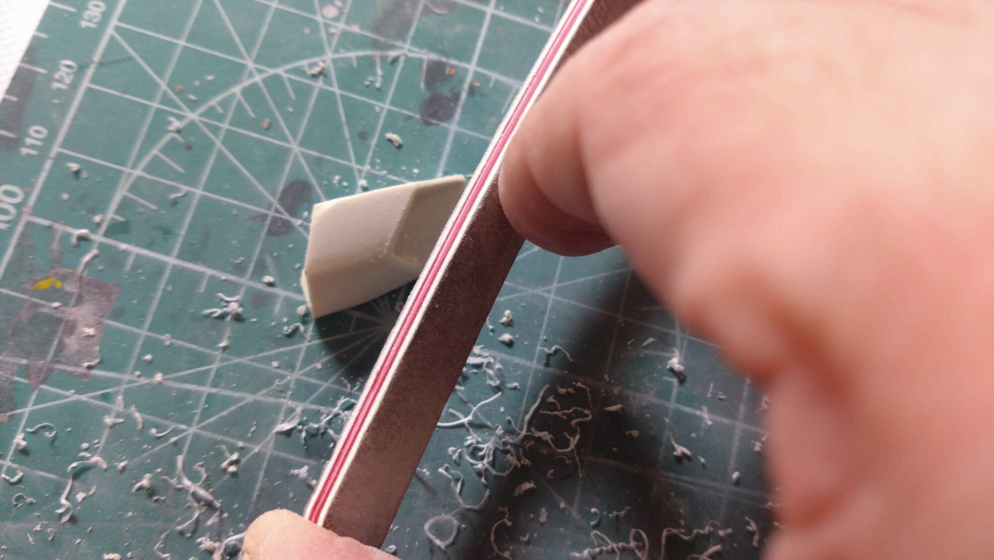ちなみに、削りやすくて安価なスティックヤスリを平面で使用するために、当て板などのツールを使用すれば、汎用性は高くなるのでお勧めです。特に隙間などは効果てきめんです。ところで、削るだけでは対処できないような面もあり、パテを使って形状作成する技術も必要だと感じました。