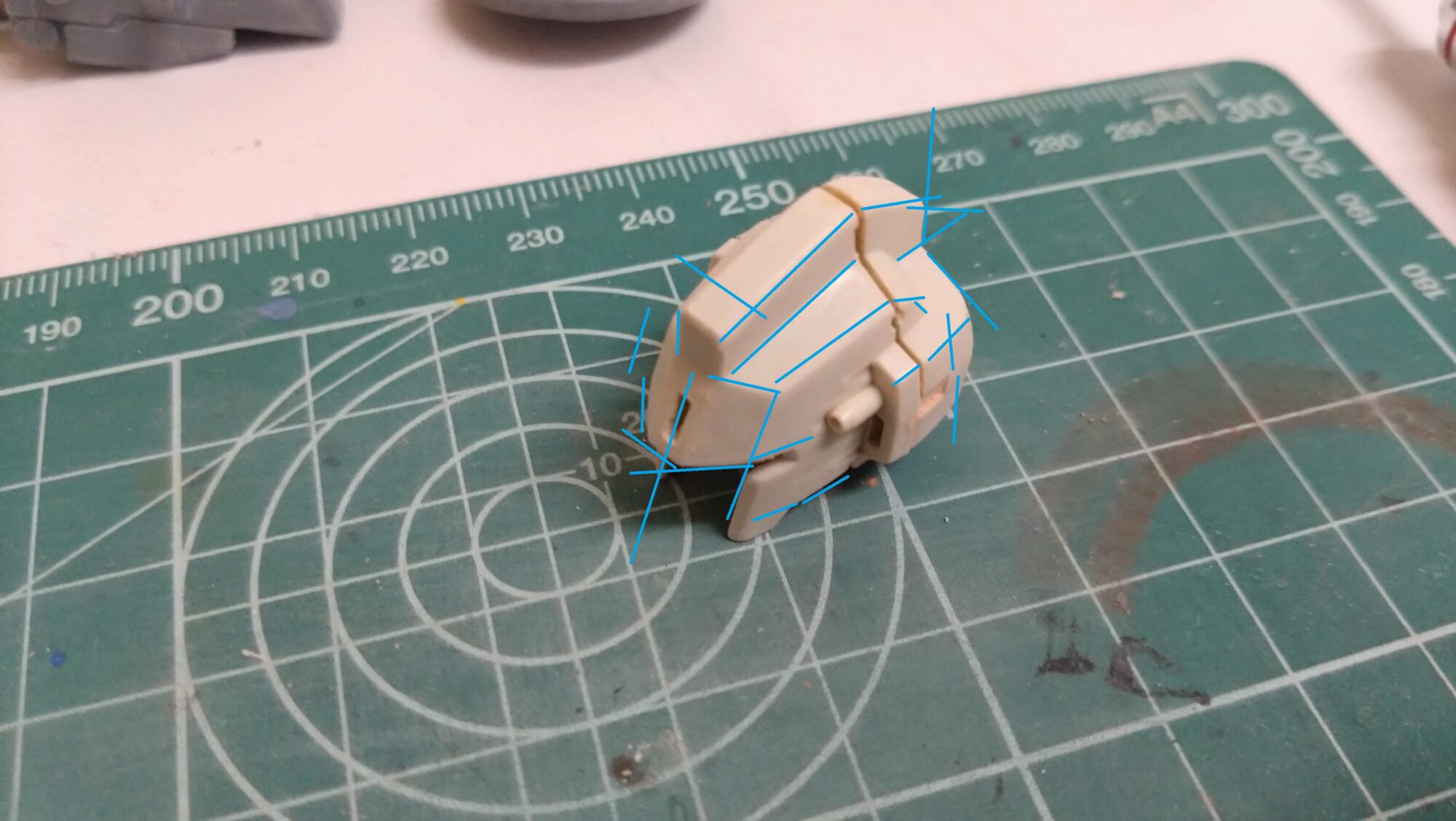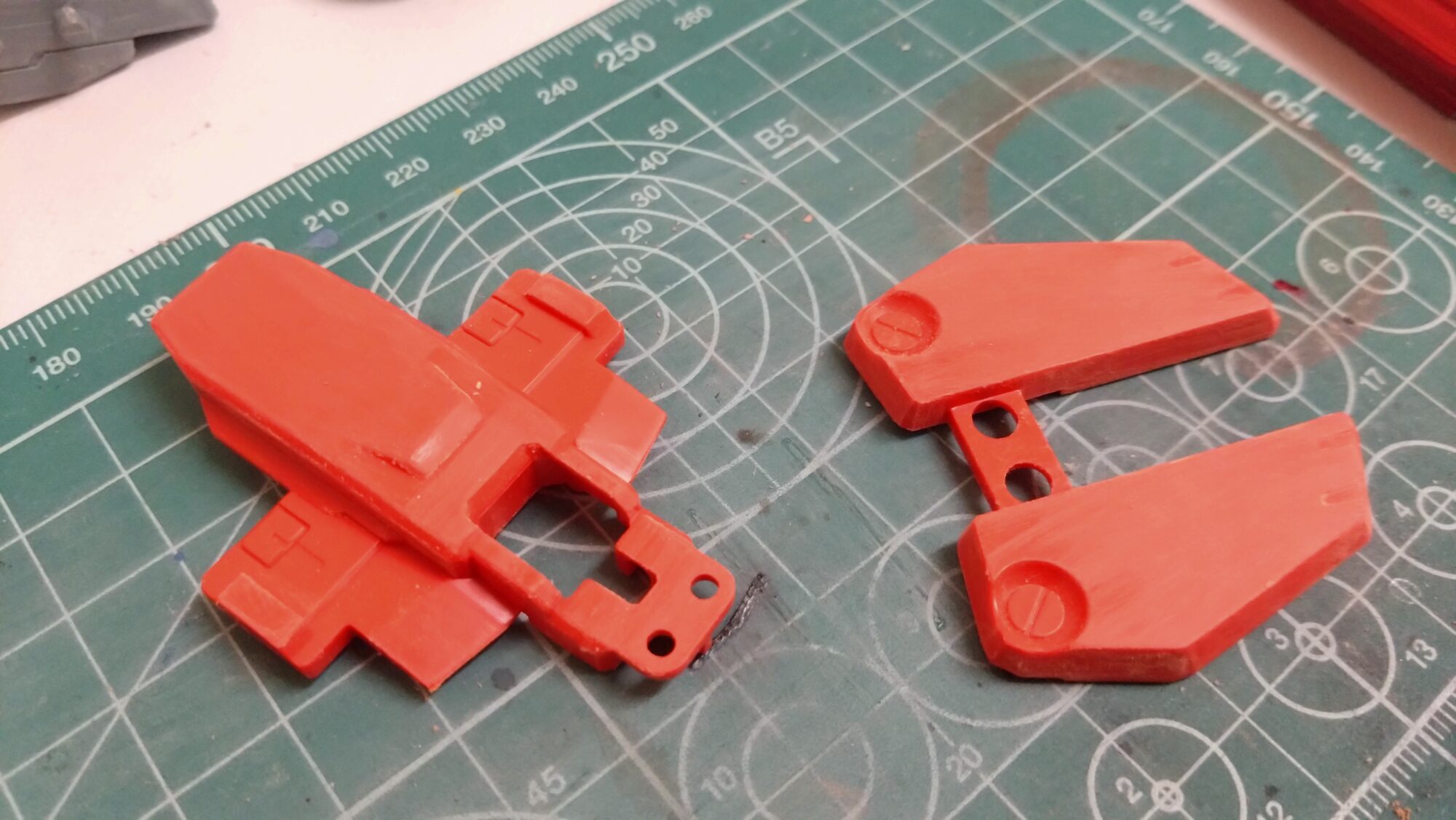 背面のスタビライザーですが、当初は合わせ目消しで対応しようと思ったのですが、色の違う箇所で段落ちモールドを追加しようと思います。
