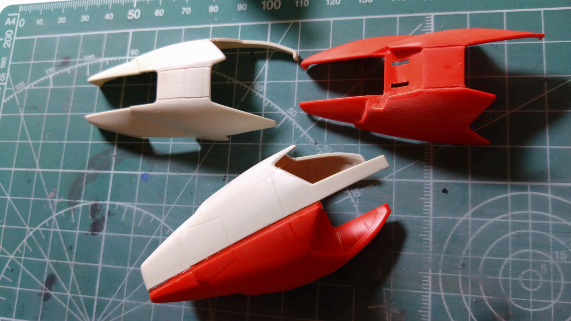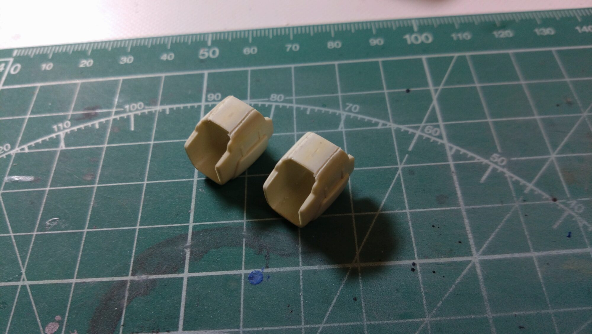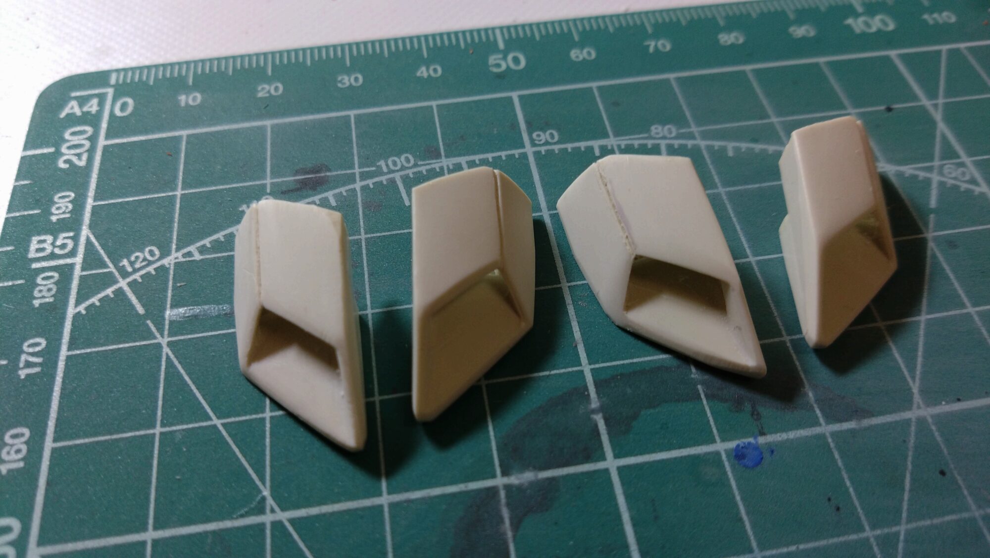 差し当たっては筋書きを描いた箇所にはスジ彫りしたり、元々のモールドにもスジ彫りの深掘りをしたり、表面を削ったりとしてきました。そこで次は、塗装に移行していきたいと思います。