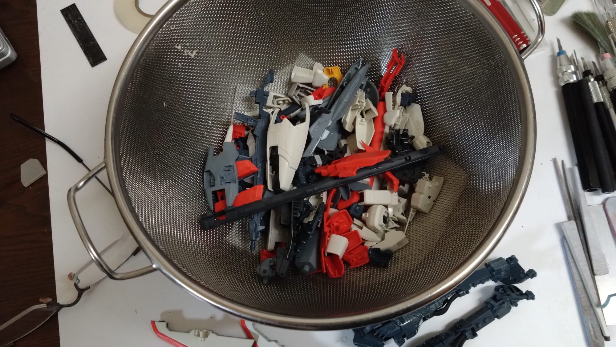 中古MGゼータプラスC1型の外装パーツを綺麗にする。塗装を剥がしたりゲート跡を綺麗に処理していきます。 4/製作中