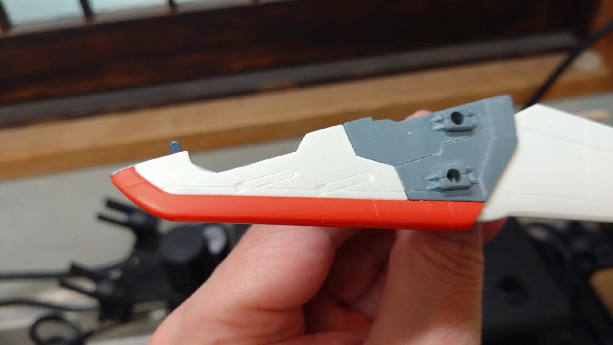 テールスタビライザーの合わせ目にも・・。途中、2.0mmのタガネで段差が付くようにモールド追加しました。