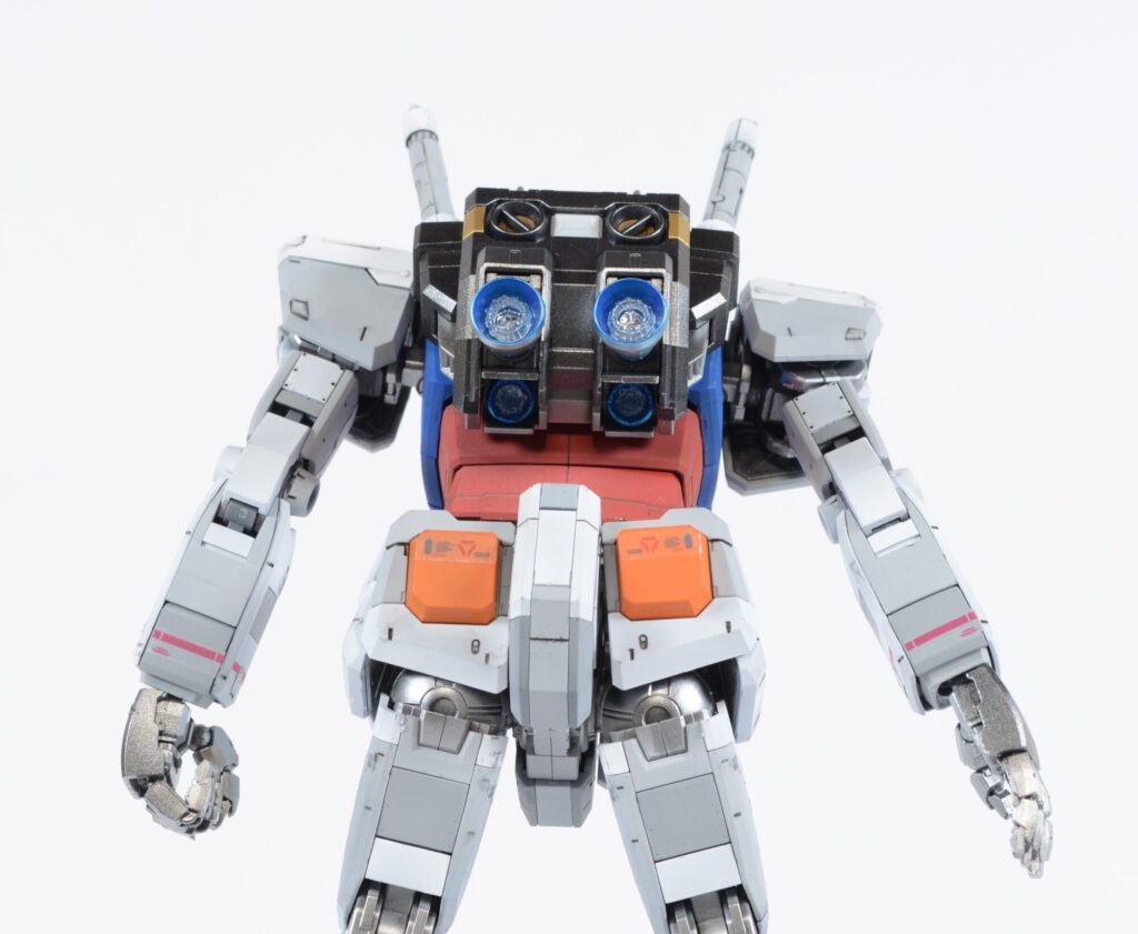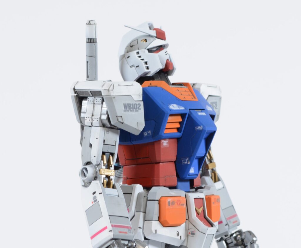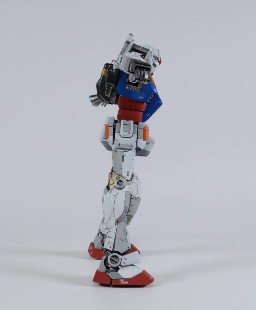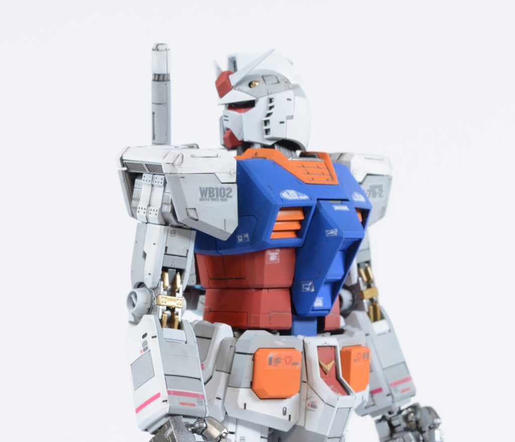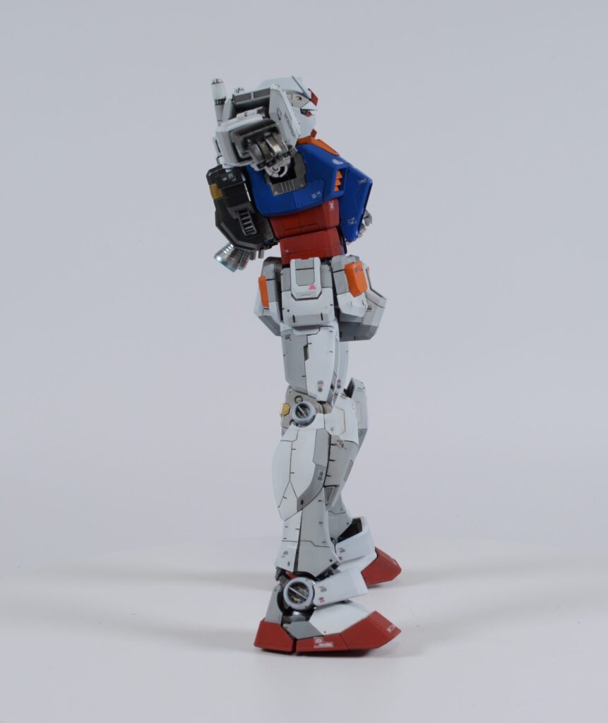 真っ白なガンダムではなく、少ーしだけ現実的な・・、リアルよりな・・・、というカラーリングにしてみたかったRX-78-2ガンダム。ですが、青、赤、黄色のトリコロールは維持したい。そこで今回の塗装、”連邦の白い悪魔”にふさわしいカラーリングになっていればうれしいですが。