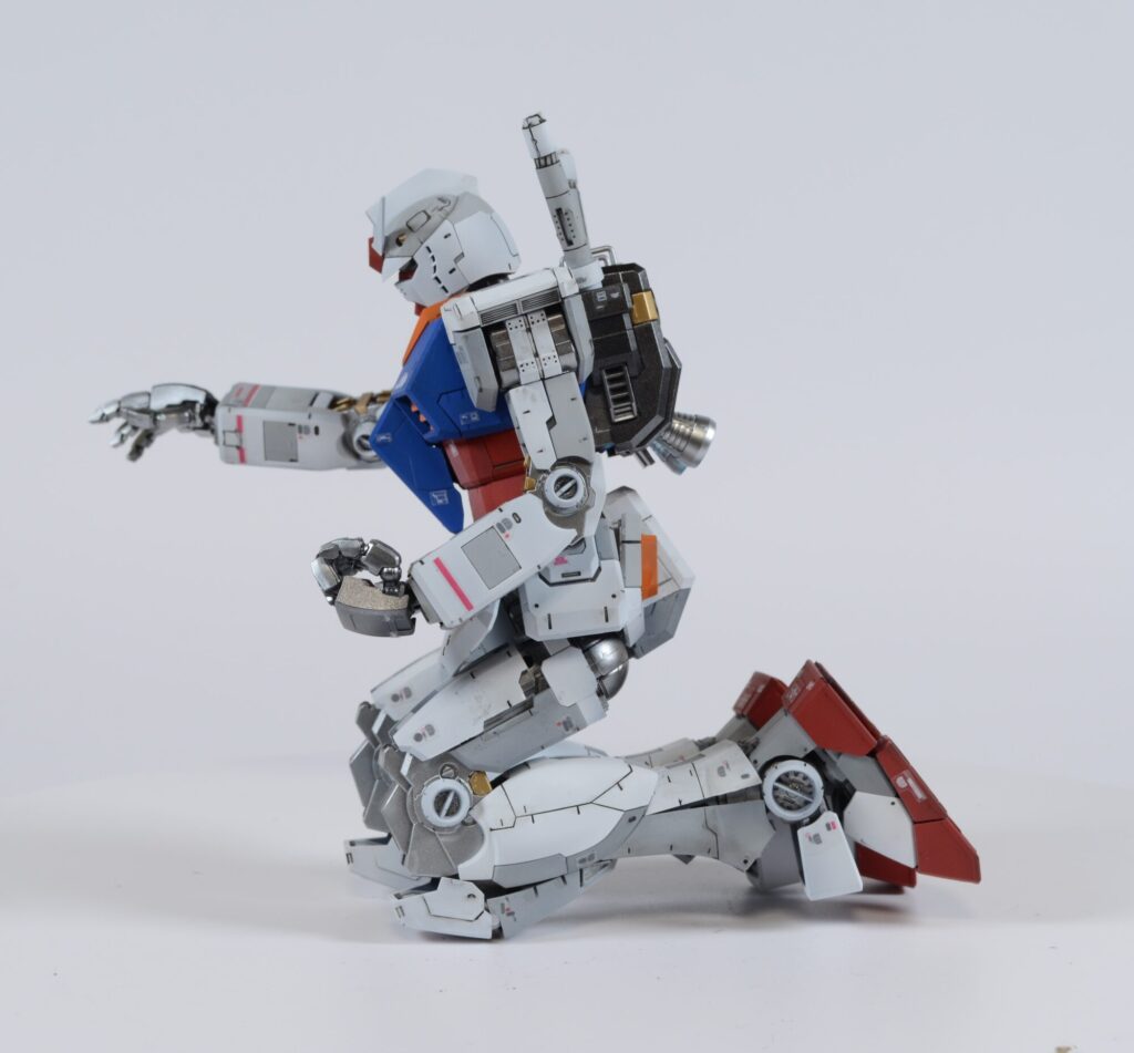 初めて1/144ガンダムを購入できた時はうれしかったですが、組み立て中に両足をつなぐジョイントが折れてしまって・・・。悲しい思いをしたことを思い出します。ほかにも、作ったら真っ白だったことに少しがっかりしたり、アニメのようなポーズを取れないことを残念に思ったり、・・でも、自分の手のひらにガンダムがあることがうれしかったり。