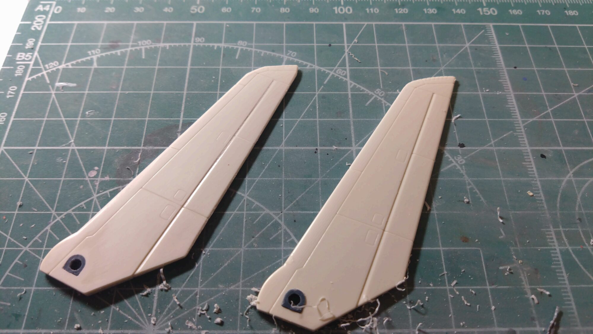 翼の肉厚が気になります。おそらく、厚さよりパーツ端の形状が野暮ったく見せているのだと思いました。