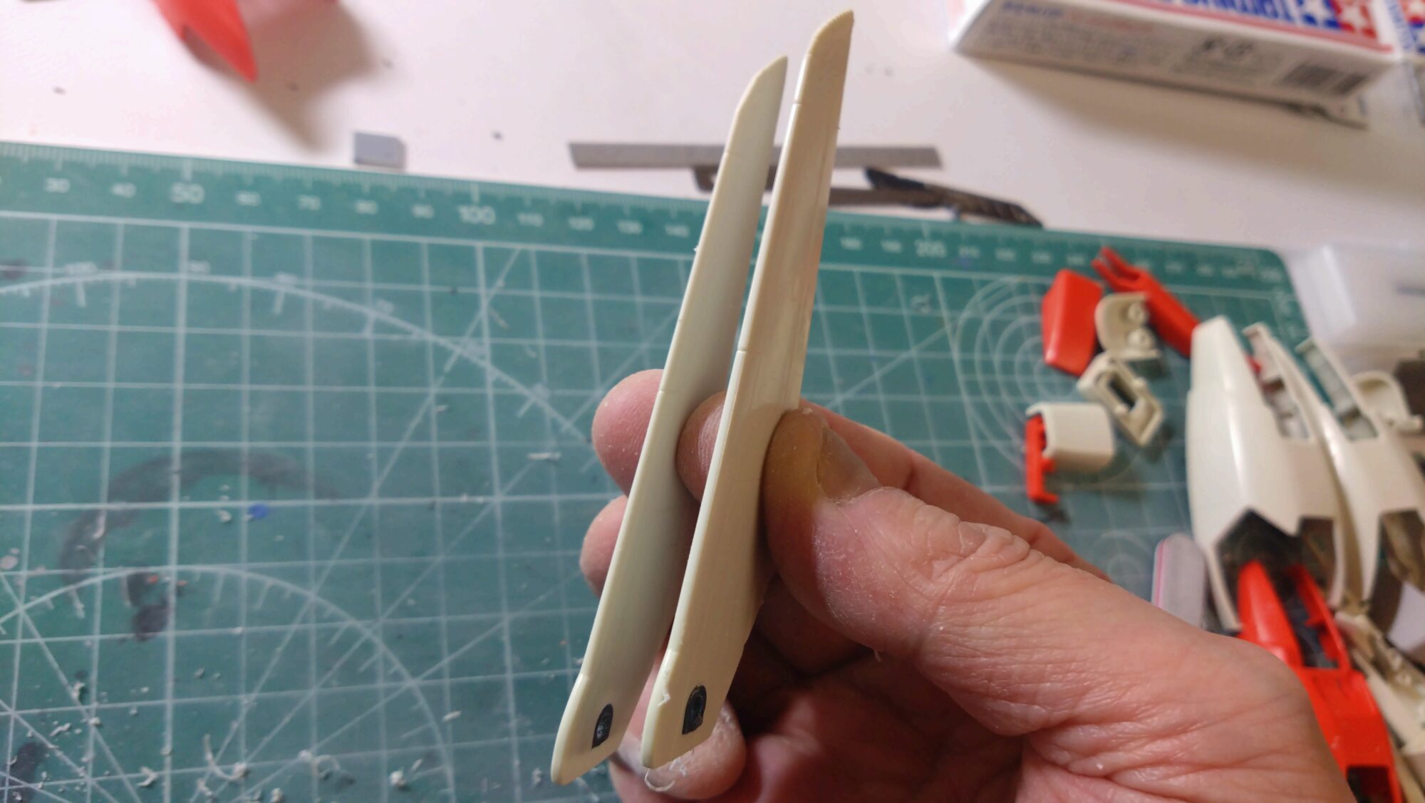 また、先端が太いためにシャープさが足りないのかもしれないと思い、先端を付近に角度を付けました。一部はニッパーでカットしてます。