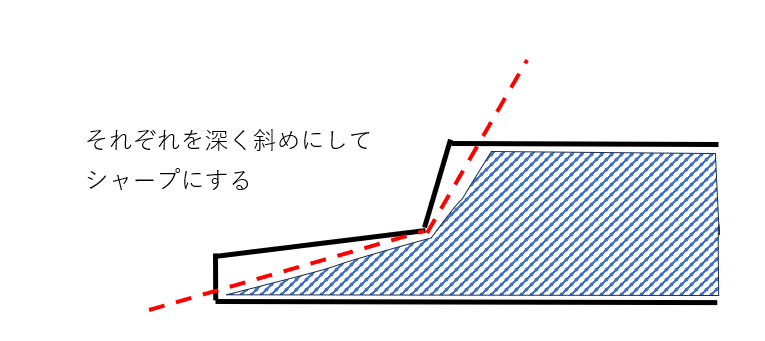 ちなみに、断面的にはこのような方法が手っ取り早いのかなと思います。表面はこの方法で削ります。