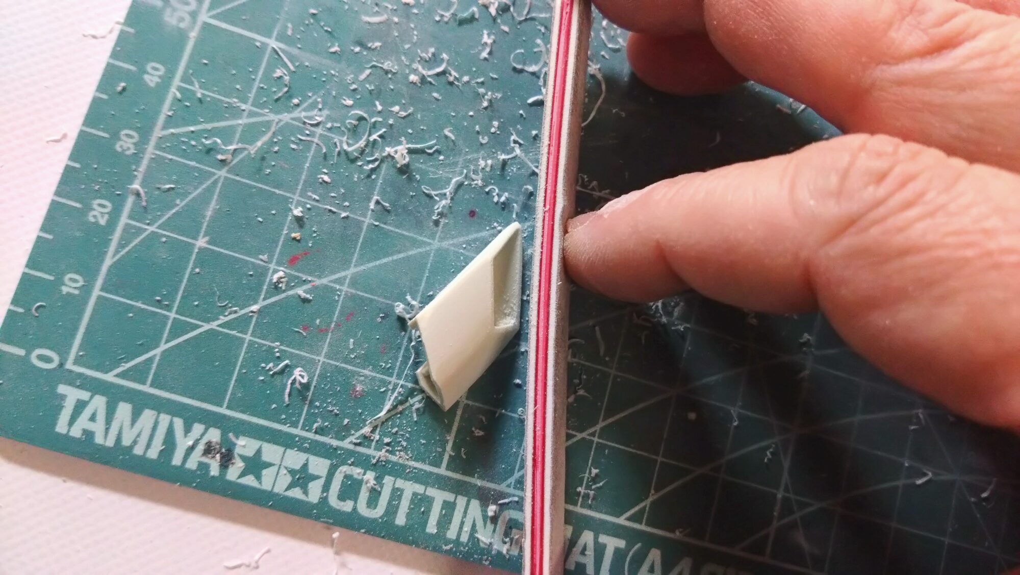 そして表面形状の修正には、ヤスリ掛けだけではなく、デザインナイフを使ってのカンナ掛けも試してみる